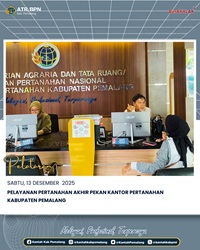 telah dilaksanakan Pelayanan Pertanahan Akhir Pekan (PELATARAN) Khusus untuk pemohon langsung tanpa kuasa di Kantor Pertanahan Kabupaten Pemalang pada Sabtu, (13/12/2025).